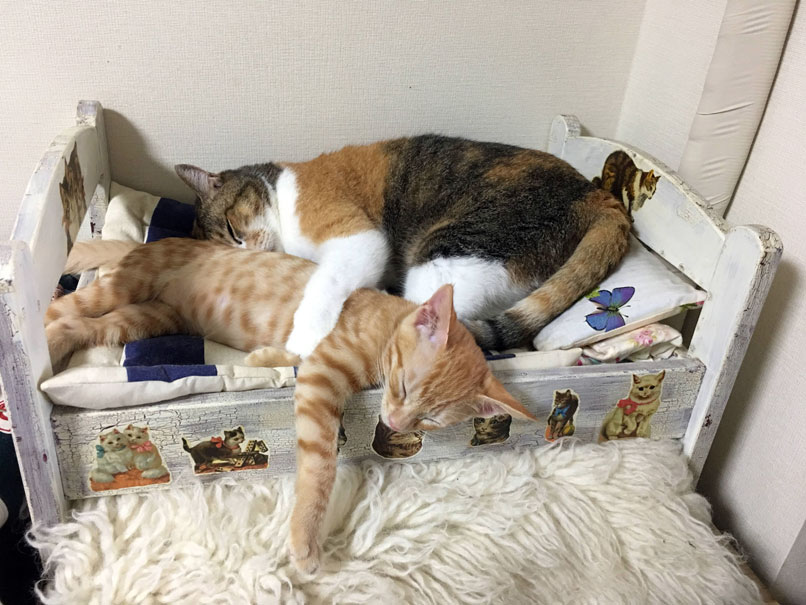 ※今回のあじゅの猫風邪「自己治癒を待つ」はあくまで、いろんな要因を鑑みた、個的なケースです。おかしいと感じた初日と翌日には皮下輸液を2本ずつ打ってもらっています。なので、脱水症状にはならなかったわけですし、すべての子に当てはまるわけではないので、猫風邪、特に、子猫、老猫はお医者さんへ行くのをおすすめいたしますm(_ _)m